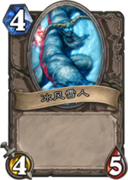 冰风雪人相比其他的同费用随从,拥有更高的属性,当然它也为此付出了一定的代价,它不带有任何特效。在大多数情况下,从第3轮到第六轮间,冰风雪人都是场上威胁最大的随从,因为它的属性增幅在于额外的血量,这也意味着它通常可以干掉两只游戏中的常见前期/中期怪。最后4点的蓝耗并不高,和黑铁矮人相当,这也意味着你可以在任何一个战术中加入它。