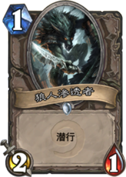 潜行是个很有趣的能力:特别是在竞技场中。潜行有点像是冲锋,你总是可以用这个随从来攻击想要换掉的目标,虽然冲锋更快。狼人渗透者的低蓝耗还有2点攻击可以让它干掉大多数游戏前期的随从,而潜行可以保护它不被英雄能力干掉。虽然狼人渗透者永远没有第二次出手的机会,但是第一个回合有牌可打可以给后来的游戏垫定基础。
