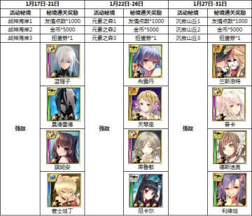 1月17日-2月14日,击败强敌将有概率获得对应本体卡牌!活动秘境每5天更新一组,更新时间为0:00。