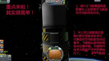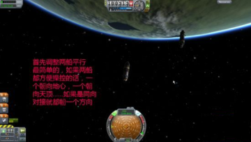 接近目标飞船时,如果不是直飞目标,有偏差,不用减速到零再对目标加速,也不用RCS调整,依然和赶羊一样,这次船头朝向是牧羊犬,运动反向标记是羊,只要引擎一开运动反向标记就会远离船头方向标记。把它赶到目标反向标记处,你就变成直飞目标了,然后再视速度和距离情况加减速即可。