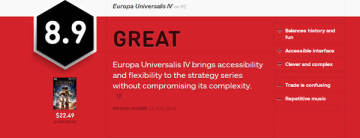 《欧陆风云4》是喜欢历史策略类游戏玩家的一道大餐,该系列最佳作品。没有几个游戏能像它一样,有这么多可以直接干预的历史世界,并且《欧陆风云4》保持了复杂度和上手难度的微妙平衡。