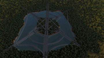 最后效果图,别忘记用地形平滑工具整地使得引桥平滑,如果立交太大,适当添加一些水面来达到美观的效果更好,大面积的树林实在太单调,期待大家的想象力咯,教程结束。这个六向立交是不是挺梦幻?