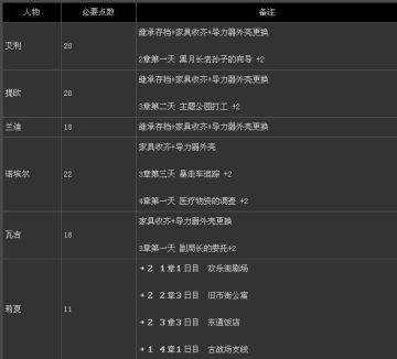 2. 次要人物羁绊所需点数
