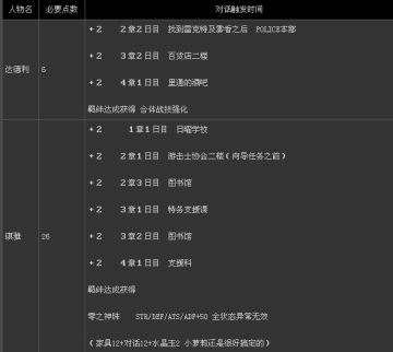 1. 主要人物羁绊所需点数