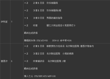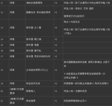 *任务指的是必然会出场加点的支线 (见下表备注)