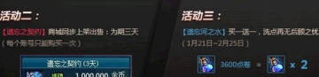 2.活动期间,除了可以免费获得遗忘之契约,玩家还可以在商城中购买为期3天的遗忘之契约,仅需100万金币。每个帐号只限购买1次。