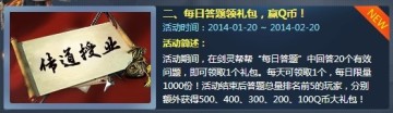 1、活动期间,在剑灵帮帮“每日答题”中回答20个有效问题,即可领取1个礼包。每天可领取1个,每日限量1000份