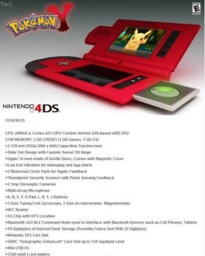 任天堂次世代新掌机配置曝光 定制GPU和3GB内存 来源: 飞翔小编feichenpan 2014/1/25 0:00:58 浏览量:1628 国外游戏媒体近日爆出任天堂次世代新掌机,其配置让人瞠目结舌,其包含ARMv8移动CPU,AMD定制GPU,3GB内存(1G系统),960x640分辨率的DVGA电容触摸屏X2,滑出式设计,上屏钢质玻璃,磁性合盖,力反馈的双滑杆,指纹认证,脉搏测量,NFC,3G芯片,GPS,蓝牙4.0,16G/32G内置存储,3DS卡槽,3300毫安锂电池,迷你USB接口。