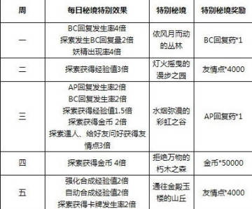 每日特别秘境和特别效果: