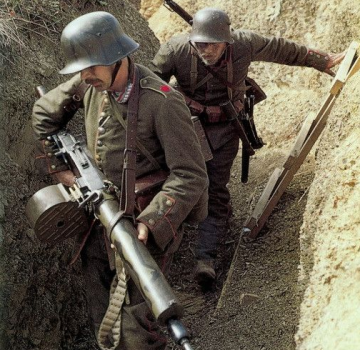 到大战中期,同盟国一方对此采取的应对措施是给步兵配备越来越多的刘易斯机枪、轻便型霍奇基斯机枪(Benet-Mercie,即本内特-莫西 M1909机枪)、绍沙(Chauchat)轻机枪或是“自动装填步枪”。尽管这些武器都还能满足需要,但是它们却都有一些固有的缺点,其中最为重要的一点是,这些武器都没有使用可快速更换的枪管,这样在短时间内打完几百发子弹后枪管就会过热而无法继续发射。