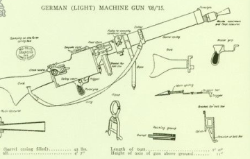 德国人决定采取新办法,他们计划对水冷的MG08重机枪进行改进,开发一种更为轻便且容易操作的武器。当时各国开始大量使用小型轻便“堑壕枪架”来取代标准的橇式四脚枪架,这反映了堑壕战中对多边的战术情况的应对需要。德国军官、著名机枪理论和应用理论家弗里德里希·冯·莫卡茨少校(Friedrich von Merkatz)深入领会了战场实际需要,提出为德国士兵开发一种在激烈作战中既不会枪管过热,又不易发生故障的近距步兵支援武器。