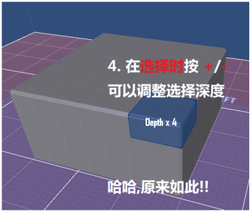 的确,按+键、- 键 可以调节选区的深度!!如下图: