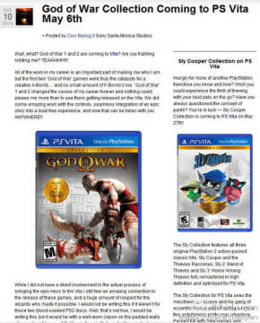 PSV掌机游戏《战神合集版》将于5月6日发售 来源: 飞翔小编feichenpan 2014/2/11 21:14:54 浏览量:305 索尼Playstation北美官方博客宣布PSV掌机游戏《战神合集版》将于2014年5月6日发售上市,售价29.99美元。该掌机版将收录PS2经典游戏《战神》和《战神2》,玩家可随时随地体验战神系列的游戏魅力。值得一提的是《狡狐大冒险合集》PSV掌机版也同时曝光,其将收录系列三部曲,预计5月27日发售。