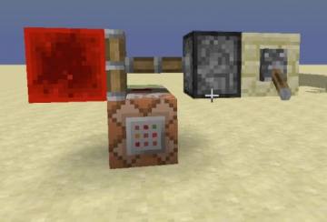 接下来说说怎么建造。首先第一步就是放下一个指令方块,打入指令。(/summon FallingSand ~ ~1 ~ {Tile:152}),之后在指令方块的正上方,放一个红石块,之后脉冲就开始了。红石块旁边放个红石的话可以给出输出。当然,这个脉冲也算高级,可以手动开启手动停下。当你打掉红石块的话,脉冲就会停止,放回去又会开始。于是,我们可以在旁边放一个活塞,用活塞推拉红石块开启或关闭脉冲。例子: