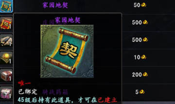 其他道具:骑乘技能书、归真石、家园地契、庄园地契、松烟墨、化龙丹、一箱化龙丹、骑战药箱