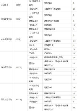 礼包名称 充值金额要求 道具名称 道具介绍 数量