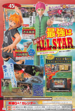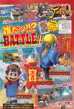 动漫格斗新作《JUMP全明星大乱斗V》现今曝光了新参战角色,来自《IQ博士》的阿拉蕾,《鼻毛真拳》的阿母,《幸运超人》的幸运超人,《齐木楠雄的灾难》的斉木楠雄都将登场参战,此外新支援角色是来自于《排球少年》的日向翔陽。《JUMP全明星大乱斗V》将于2014年3月19日登陆PS3和PSV,敬请期待。