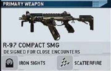 R-97紧凑式冲锋枪,为近距离遭遇战设计,可装配机瞄、红点、发散式火力(?),其他未知。