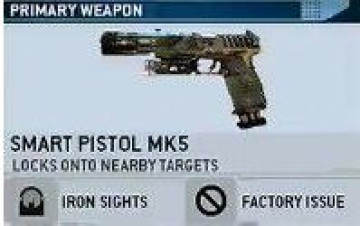 智能手枪,锁定附近的目标,可装备机瞄,枪口抑制器,其他未知。