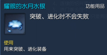 从图中可以看到耀眼的水月水银怎么用,进化突破需要的水银数量不少,小编猜测,消耗水银:武器>首饰,进化>突破。