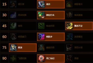 盗贼天赋:诡诈, 神经打击,飘忽不定,暗步,欺凌,死亡标记(术士队伍用速度爆发)