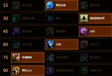德鲁伊天赋:野性移位,塞纳里奥结节,台风,变身,惊魂咆哮,野性之心(美服第一个用大树打进rank1的)
