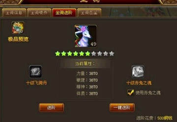 4399太古遮天的坐骑不仅再外表上吸引眼球,更能给玩家增加大量的属性战力哦,提升坐骑的阶段,附加属性越大。