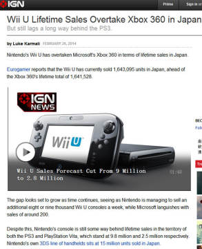 任天堂WiiU在日本的销量终于超越了微软XBOX360