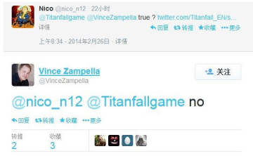 《泰坦陨落》制作组Respawn的Vince Zampella推特原文: