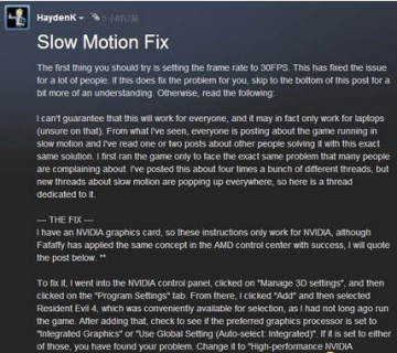 有部分玩家反映游戏会慢动作(大部分是笔记本玩家),STEAM官方社群给出了解决方案: