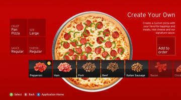 微软旗下的XBOX游戏主机发展策略经常向非游戏应用积极扩张,从XBOX360平台上的必胜客(Pizza Hut)应用就可看出,在2013年年底,美国必胜客在XBOX360上推出了点餐App,上面除了有必胜客所有的菜单,消费者还可以自己调整配料,组合出自己最爱的特製披萨,目前该应用已经有超过了100万美元营收。