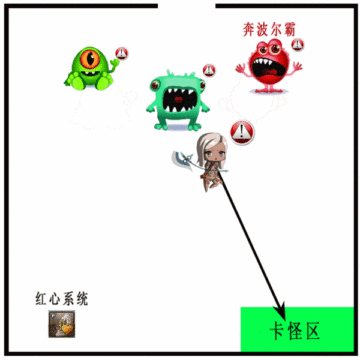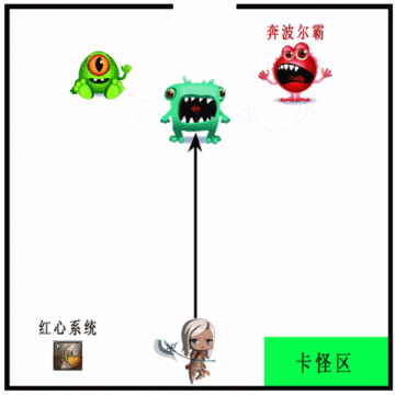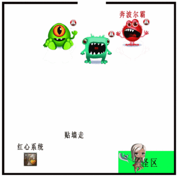 然后小怪冲过来的时候你贴墙向左SS紧接着贴墙走到红心区就可以了。