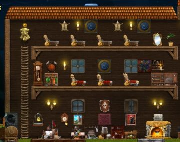 关于房间建造和睡觉下面上图:首先建设背景墙 第二步在背景墙上建设墙(就是再放一个背景墙)上面放屋顶 第三步放上门和神像,神像变黄,放上床就能睡觉了(每个矮人一个床,没有床的不会睡觉)