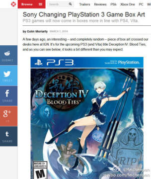 索尼PS3游戏包装外观将改变 采用蓝色风格 来源: 飞翔小编feichenpan 2014/3/9 21:22:41 浏览量:332 根据国外著名游戏媒体IGN的报道,索尼将再度改变PS3游戏包装外观,采用类似PS4和PSV游戏包装的蓝色风格,未来上市发售的PS3游戏包装外观将与PS4和PSV形成统一。索尼PS3游戏第一版包装使用的是黑色Playstation 3竖印刷在盒子左侧面,而第二版封面则是将PS3标志位置改到顶端,Playstation 3也缩写成PS3。