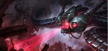 随著新英雄维尔科兹登场的搭配造型是「狂派机甲」,虽然换上了造型,但是仍然不减维尔科兹触手的灵活度,红外线的光束看起来更有杀伤力。迴家的动作也改为非常有趣的火箭升空,「狂派机甲」维尔科兹已经準备好要以高科技肆无忌惮地将一切化为粉尘。