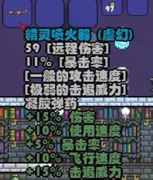 攻击模式是利用凝胶从枪口喷出火焰,这时枪手武器中位数不多的群攻武器,在1.2.2之前的版本有一把聚焦喷火器,深受广大射手玩家的亲睐和喜爱,现在1.2.2出了新的喷火器,不管是样貌还是攻击力都与之前的聚焦喷火器有了很大的改善,穿了蓝光之后(+饰品)这把精灵喷火器的攻击力可以达到76,算是很高的攻击力了。