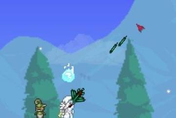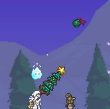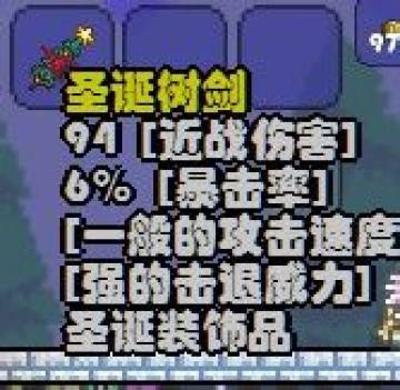 攻击模式是从尖端飞出一个圣诞礼物砸向对手,奇葩武器来了,伤害还说得过去,这攻击机制和泰拉不是一样的吗?无力吐槽,我想Re-logic出的这个武器就是为了玩家收藏的吧!