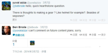 要说炉石传说里英雄的装备恐怕就只有武器这一种了---听上去似乎一点儿也不cooool。近日就有玩家在推特上询问炉石传说首席技术设计师Ben Brode,在未来炉石传说是否会加入诸如头盔之类的装备呢?相信游戏会更有乐趣也更具多样化。