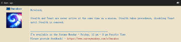 对此社区经理Omrakos表示,对于任何一名仆从而言,嘲讽和潜行效果无法同时出发。潜行效果在先,因而嘲讽效果就无法生效了。当然,如果该仆从破除了潜行效果的话,嘲讽效果就将生效。