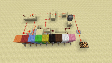 第四步:做一个激活时可以阻断线路的活塞机关,并将其余六条线路都连上这个活塞,这样拉下一个错误拉杆时红石就不会被激活(我把灯换成了铁门):