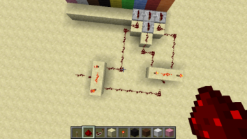 第三步:把有密码三个拉杆后面的三个线路接成两个与门,最终变成一根线,这样当三个拉杆都被拉下是就可以控制红石被激活了: