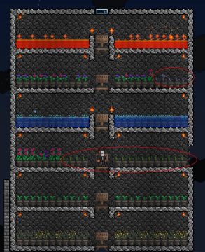 第6,获取条件和水草差不多的火焰花(马里奥?),是在地狱层看到,和水草一样用砖块围牢,倒岩浆。但注意,周围有强力小怪,因此您若是没有能2下之内解决火焰蝙蝠和火焰史莱姆的能力话,您还是老实点,或者碰运气。之后花盆养殖与水草一样,水换岩浆即可,就这么多。