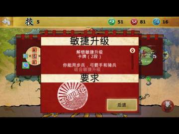 主干第二点和第三点都是升级道场的,可以增加卡槽生产卡片的时间和卡片价钱折扣当你点出第一点你可以解锁弓兵和骑兵这个兵种我们下面再说