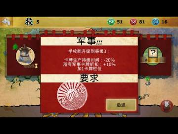 这一关你只要做出一个图书馆,三个道场,一个钟楼就够了!在本关里图书馆的各种技能卡片非常好用!
