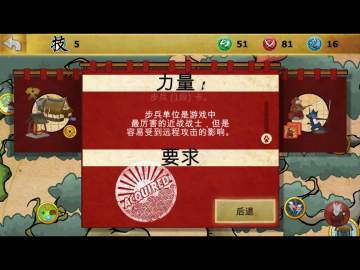 力量主干技能有三种,分别是第一点的基础,解锁钟楼和道场,提供基础兵种卡片:步兵。钟楼每5秒生产15金币!