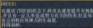 就是他大招技能‘同归’。这个技能是会每秒扣除自己的血量。所以在前期没有好回复血量装备的时候,直接使用是会把自己弄上西天见佛祖的。千万要注意。那么要怎么样才能不会去见佛祖呢。