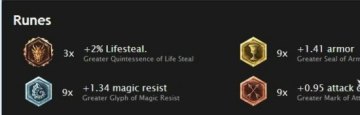 S4大嘴符文,这是一套ADC标准符文。红色九个攻击力,黄色九个护甲,蓝色九个固定魔抗,紫色三个生命偷取。你也可以选择只带一个或者两个生命偷取精华。