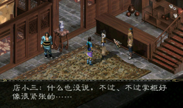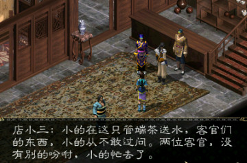 回城找客栈掌柜询问字条的事情,掌柜再次推说不知,并以报官相威胁。询问店小三,一直很冷静的店小三此时则借故离开不肯回答。