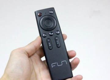 Fun Box在设计上采取魔方造型,主板两侧加散热片和风扇,底部开孔进行两侧风道口设计,背面预留USB和MicroUSB口。主机采用双频、双天线的WiFi无线方案;采用蓝牙遥控器,14键简化设计,无指向操作,同时配备蓝牙游戏手柄。