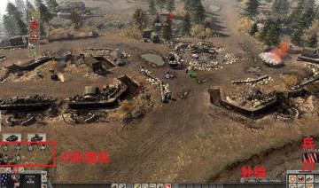 小队情况:玩家所有的军队分成部队的部队进行战斗。在小队情况概览里能看到所有的部队情况。点击部队相应的图标就能选取并控制该部队。图标旁的原点代表了部队下属单位的个数。